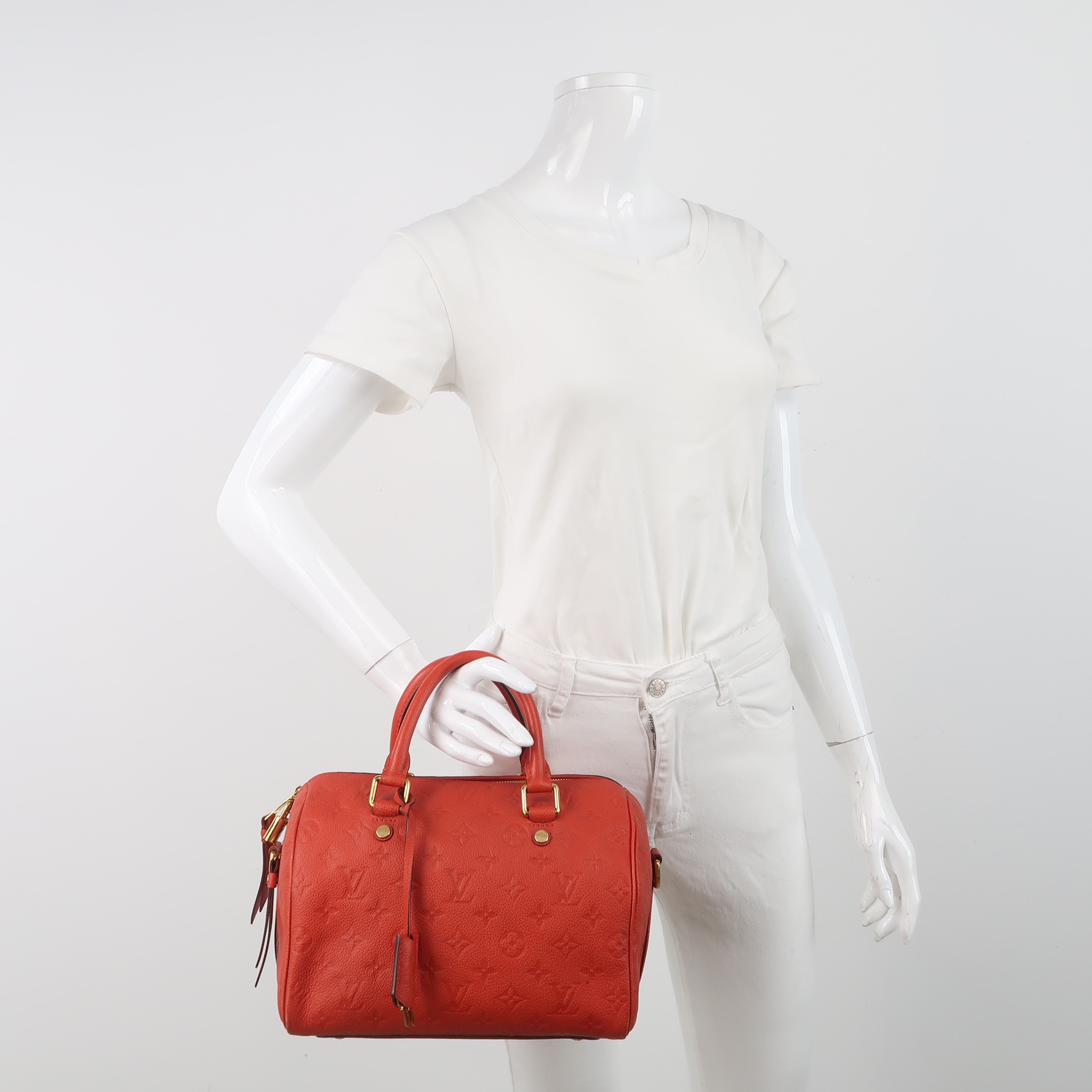 Louis Vuitton Speedy 25 Monogram Embossed Leather Top Handle Boston Bag