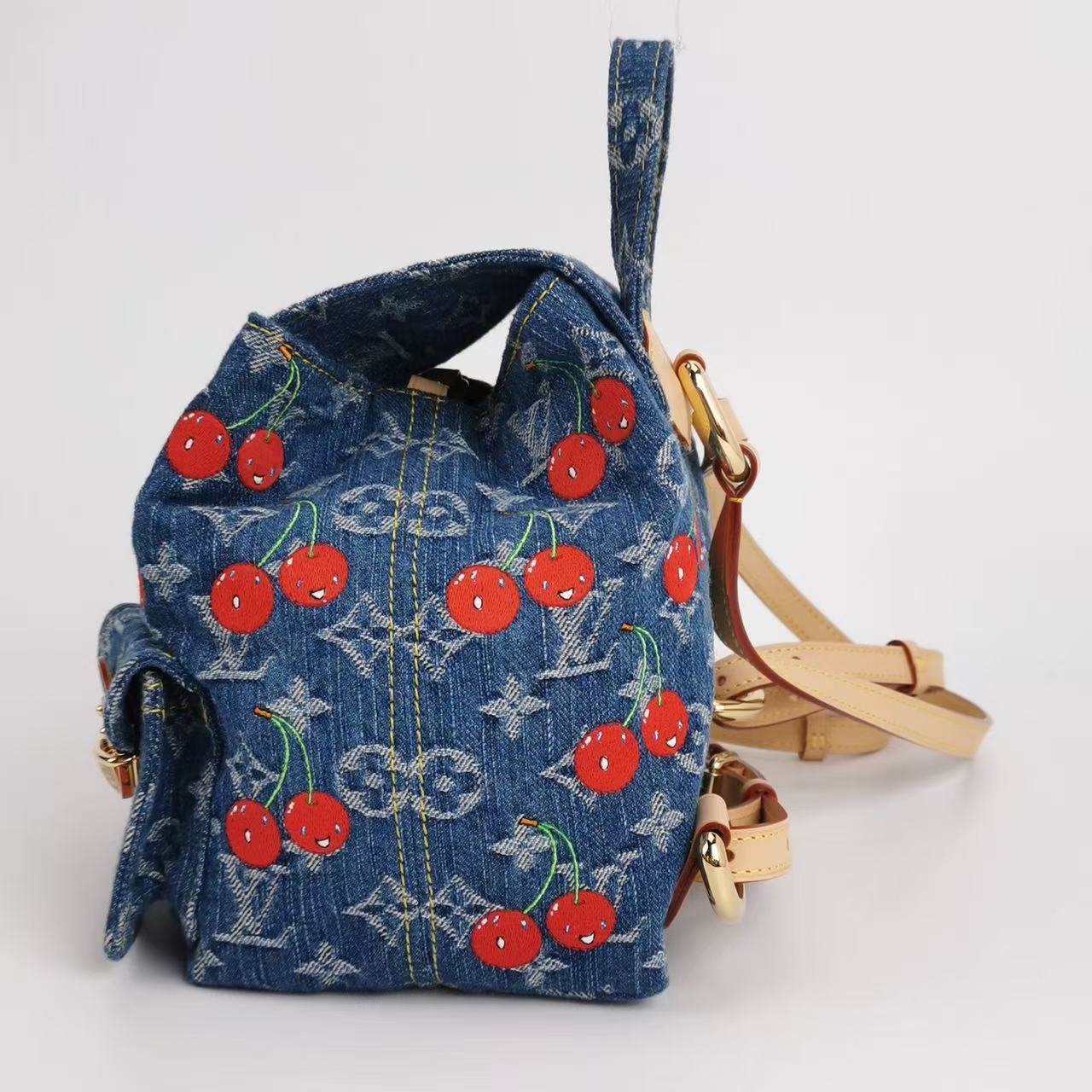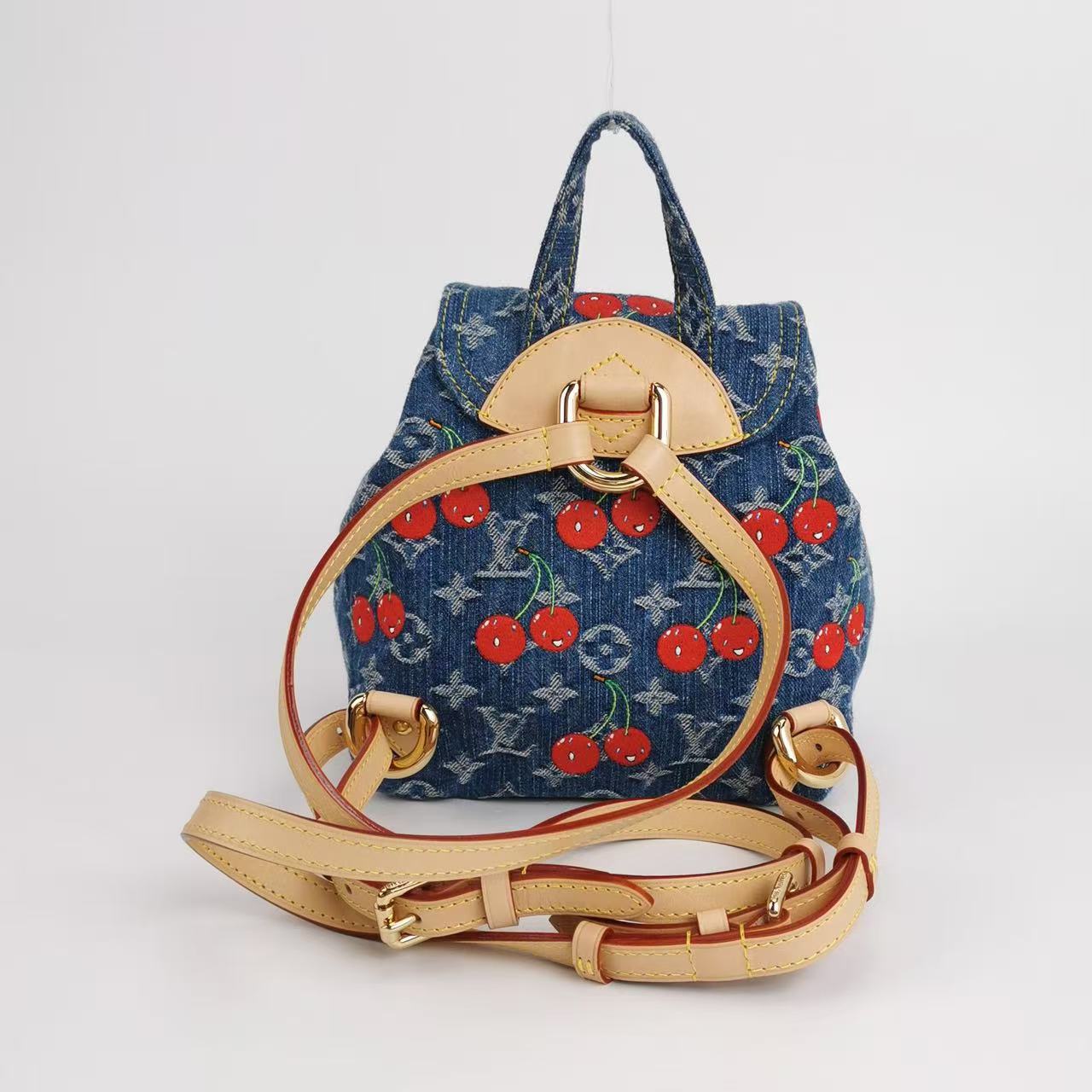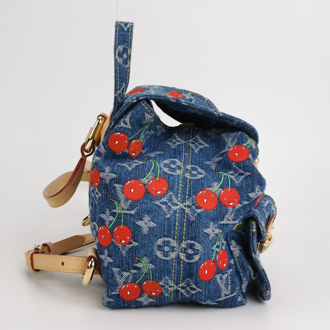 Collector’s favorite from the LV × Murakami era — cherry denim backpack, discontinued, and rarely seen on the market.